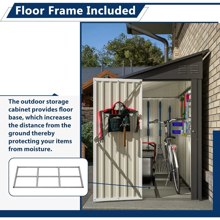 4' x 8' Metal Wall Side Storage Shed for Outdoor Use in Garden Backyard and Patio Durable Black Outdoor Storage Cabinet with Le