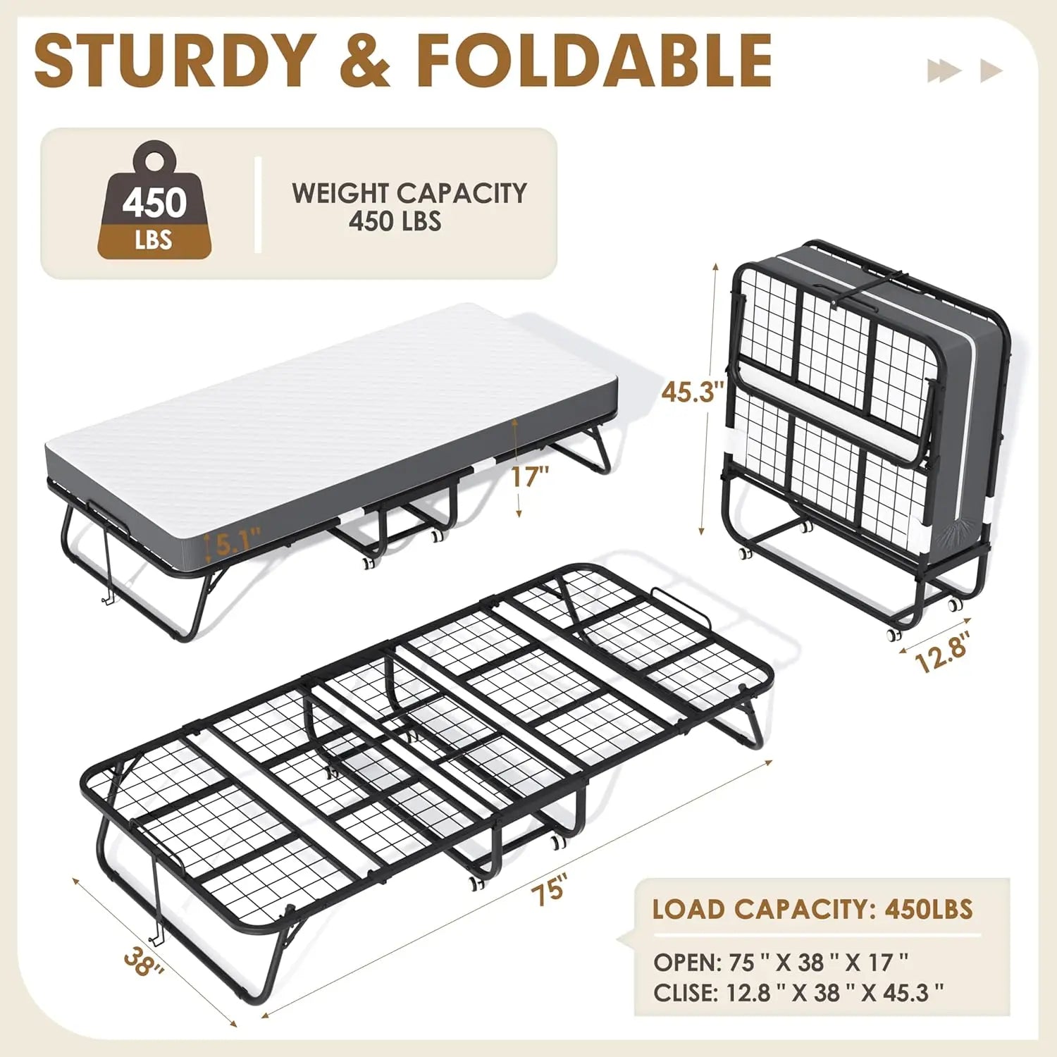 Folding Bed with Mattress, 75" x 38" Rollaway Bed with Mattress for Adults, Space-Saving Sturdy Metal Fold Up Beds,, Customized